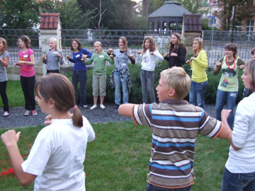 Am Sonntagmittag wurden die Begegnungstage feierlich eröffnet. Die Schüler, ihre Eltern, Lehrer und zahlreiche Ehrengäste, insgesamt ca. 160 Gäste, begrüßten wir in der Brücke-Villa und im geschmückten Zelt im Hof des Brücke/Most-Zentrums. Trotz des regnerischen Wetters, welches uns das erste Mal in der langjährigen Geschichte der Begegnungstage einen kleinen Streich spielte, war die Atmosphäre festlich, heiter und voller Erwartung. Nach den schönen Grußworten der Ehrengäste war ein gemeinsames Grillmittagessen vorbereitet. Danach konnten die Schülerinnen und Schüler die ersten Erlebnisse mit den neuen Mitschülern bei verschiedenen Spielstationen sammeln. Am Nachmittag verabschiedeten sich die Kinder von den Eltern und waren schon bald damit beschäftigt, sich mit lustigen Spielen kennen zu lernen.